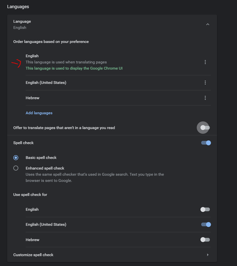 Make sure to set English as the FIRST language in the list - Restart chrome afterwards.